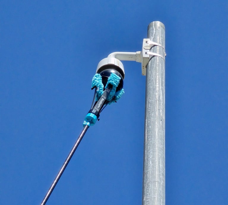 At Clear Cam Pros, we deliver safe, effective security camera cleaning using professional tools that eliminate the need for ladders or lifts — reducing risk to both your property and our technicians. Our specialized equipment is designed specifically for delicate camera lenses and housings, removing dirt, dust, water spots, and spider webs that can obstruct views and degrade video quality.